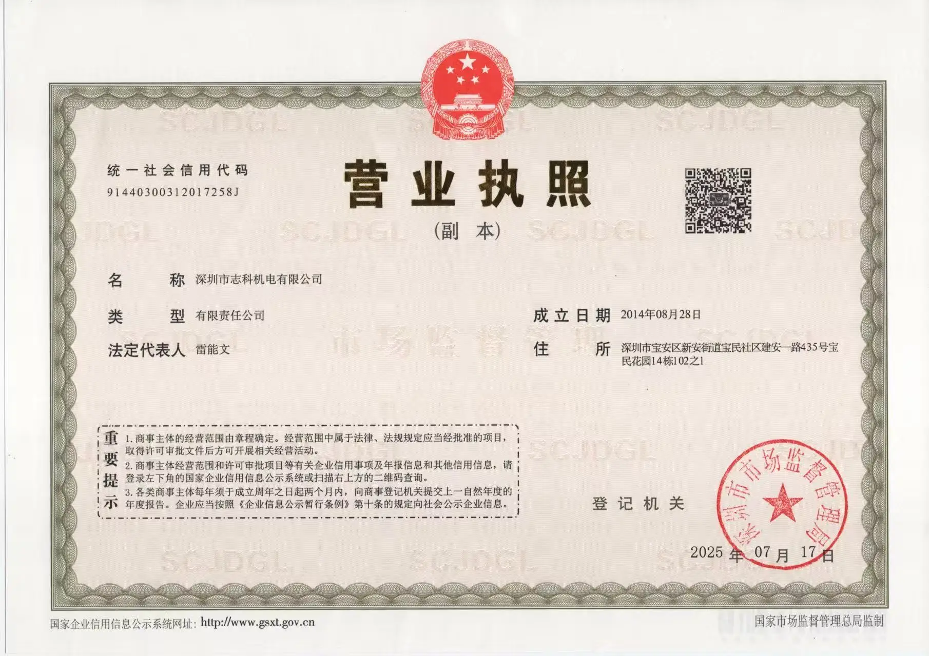 Registration No. : 91440300312017258J